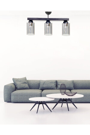 Pare Model Modern Spor Siyah 4'lu Glop Füme Camlı Avize