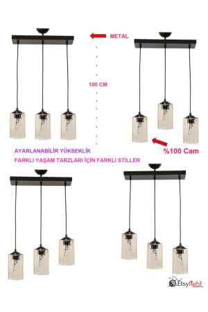 MNZ-Etsylight دورة صف من 3 شمعدان شمعة سوداء مع ميزات جمالية المنتج، الذي يستخدم مدخنة من نوع E27, مناسب للاستخدام مع مصابيح