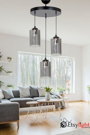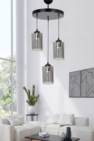 3'lü Siyah Modern Sarkıt Led Avize Beyaz Işık Salon Mutfak Oda Hol Ledli Avize