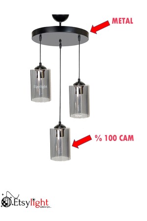 Pare Model Modern Spor Siyah 4'lu Glop Füme Camlı Avize