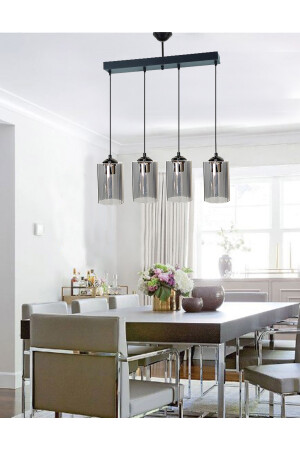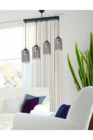 Pare Model Modern Spor Siyah 4'lu Glop Füme Camlı Avize