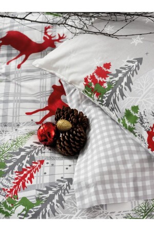 MNZ-Double Ranforce Duvet Cover Set خاصة السنة الجديدة Holly Gray Cotton Box Holy GRİ Ç.K