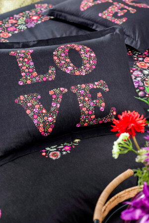 MNZ-Double Ranforce Duvet Cover Set Love Bouquet أسود dop10166671igo