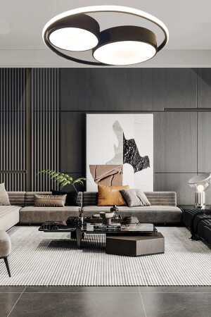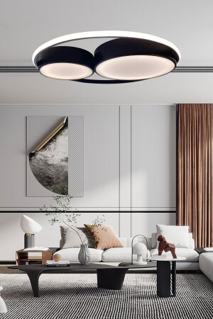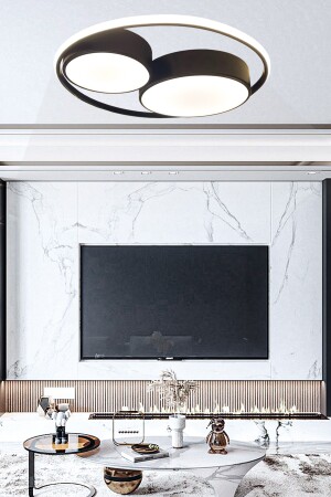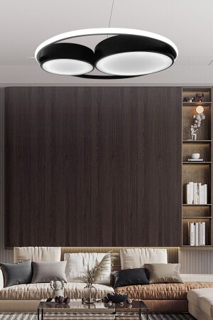 MNZ-Double Ring Round Black LED Chandelier، 3 ألوان إضاءة مع التحكم عن بعد، و Plafonier Chandelier مع المضيء 1007
