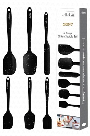 MNZ-Drongo مقاومة للحرارة ضد النار لا علبة سليكون Spatula مجموعة 6 قطع نقطة سوداء