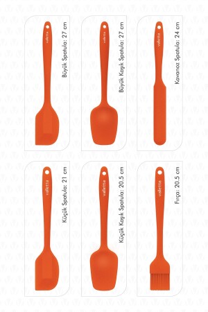 MNZ-Valletta Drongo Heat Resistant Fireproof Nonstick Silicone Spatula Set 6 Pieces Orange Heat Resistant Fireproof Nonstick مصنوع من مواد سيليكون عالية