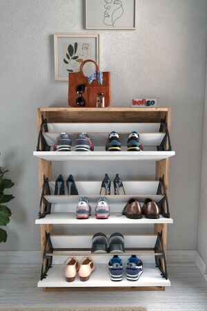 MNZ-Drop Door Shoe Rack ريك الأحذية مع رف متحرك 3 شقق ريك الأحذية الصنوبر الأبيض