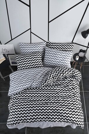 MNZ-Duple Duvet Cover Set زيغزاج أسود رمادي CKNT-ZİGZAG
