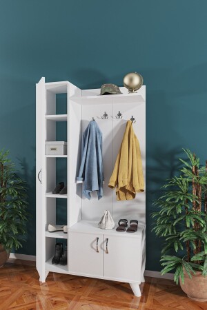 MNZ-Plus مرآة غرفة الملابس حذاء رف معطف رف ومدفوع الجدار - أبيض / أبيض