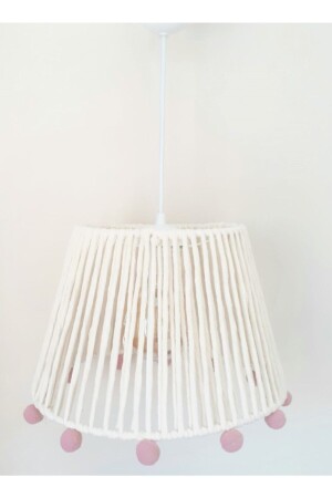 قمرة معلقة مصفوفة بالحبل المصنوعة يدوياً مع تفاصيل بوم بوم بوم أبعاد: قطر أعلى: 20 قطر أدناه: 30 سم طول الجسم