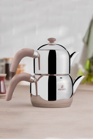 يسمح لك مجموعة الشاي المستندة إلى التشرب الصغيري من قِبل الطاقة النفسية من قِبل طراز MNZ-Karaca Edge Mini Induction Based Teapot Set