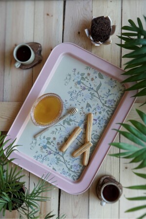 Lüx Kare Kelebek Aksesuarlı Paslanmaz Çelik 6’lı Gümüş Kahve, Çay, Dekoratif Sunum Servis Tepsisi MZKBK667