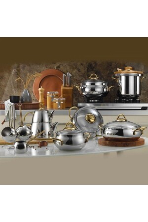 م.ن.ز-كوتاهيا إيفيس 18 PRC STEEL DUBLE SET GOLD HANDLE ميزات المنتج: مصنوع من 18/10 من فولاذ غير فولاذ