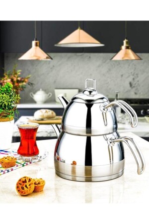 MNZ-ÖZLİFE ELA Plain 4 Piece حجم كبير مجموعة الشاي الأبعاد: الشاي العلوي: 1.00 لتر قطعة ماء أسفل: 2.20 لتر المواد: