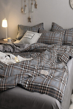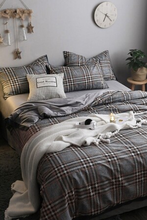 MNZ-Elastic Sheet Duvet Cover Set مضاعفة النمط الشمالي الرمادي iqon006