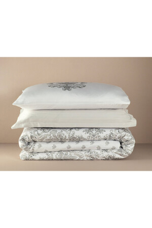 MNZ-Elegant Crown Cotton Satin King Size Duvet Cover Set 240x220 سم الفضة TYCGLR8A6N168736339070285