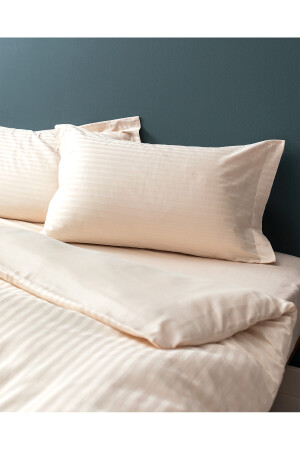 وصف المنتج: مجموعة إيليسيا المزدوجة المخططة للفلفلفة الساتينية - مجموعة غطاء غطاء الساتينية الذهبية 100% القطن الس