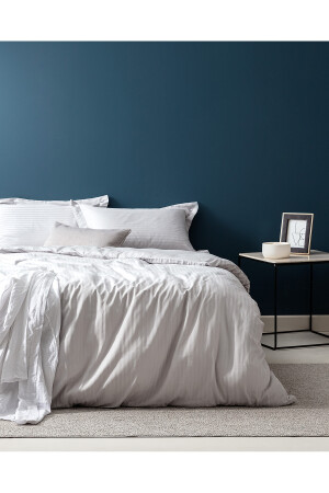 وصف المنتج: Elicia King Size Stripped Satin Duvet Cover Set - Light Gray Satin duvet cover sets سيزيد نوعية نومك بنسيجها الناعم والسلس ، مع جلب