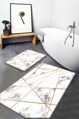 MNZ-Else صفراء الرخام الرمادي نمط غسيل غير المنزلق مجموعة قاعدة من 2 حمام السجاد المرحاض والمقعد المرحاض Elsebanyopas13