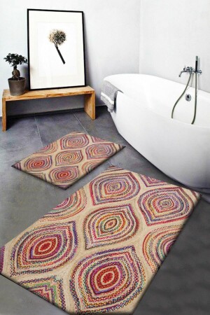 Desenli Yıkanabilir Modern Tekli Banyo Paspası Halı Vintage Dokuma Kilim 50x80cm elsekaratezgahbny