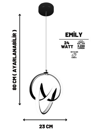MNZ-Emily Black لمبعة معلق واحدة لامباً بيضاء LED شمعة emily-siyah-01