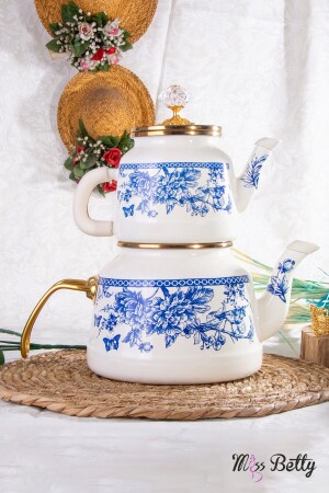 Emaye Royal Porselen Demlikli Çaydanlık Piraye