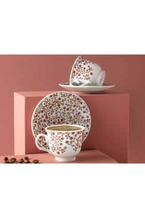 MNZ-English Hiedra Porcelain Set من كوبين قهوة 80 مل كلاريت الأحمر 10035676