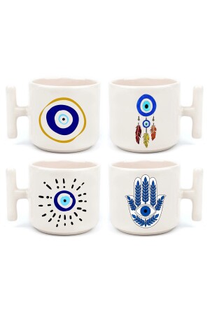 MNZ-Evil Eye Beaded Eye Printed Set من 4 كوبات صناعة يدويّة