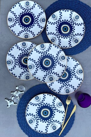 MNZ-Evil Eye Beaded Gold Golded 25 سم البورتسلين الحديثة الأزرق للاستعمال مجموعة لـ 6 أشخاص PDNZ25CMSS