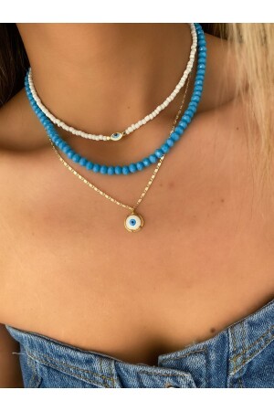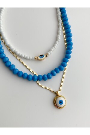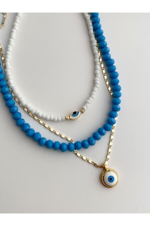 MNZ-Evil Eye Detail Perl Crystal Stone Triple Set قلادة / قلادة متعددة المجموعات