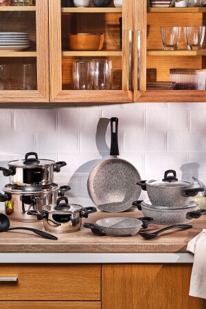MNZ-خبير 14 قطعة فولاذ المقاوم للصدأ / غرانيت بوت مجموعة المجموعة المحتوى: 16 سم ساوسة عميقة من الفولاذ 1.5 لتر 20 سم