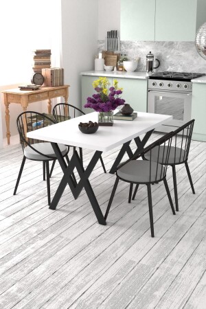 سلسلة MNZ-Barni Plain White Extendable Dining and Kitchen Table Set مع 6 مقاعد - بارني الارضي-06