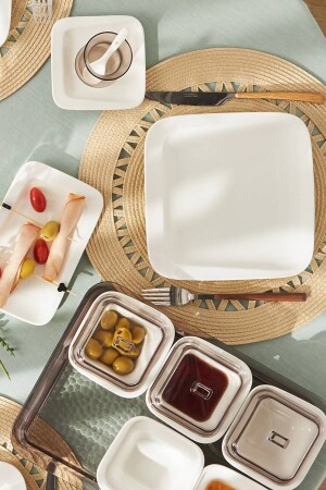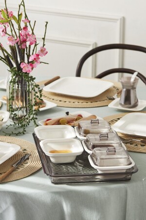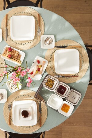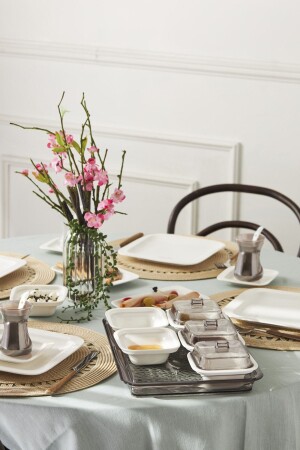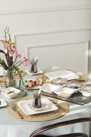 64 Parça 12 Kişilik Platin Modern Krem Kahvaltı Takımı