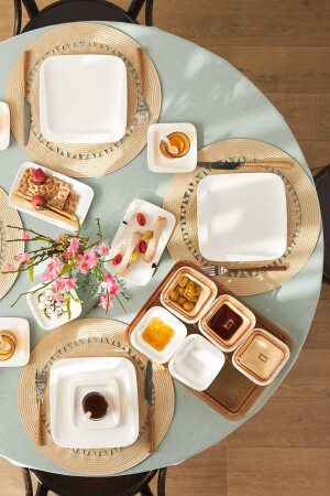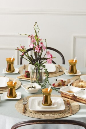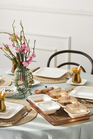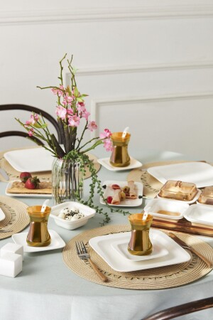 64 Parça 12 Kişilik Gold Modern Krem Kahvaltı Takımı