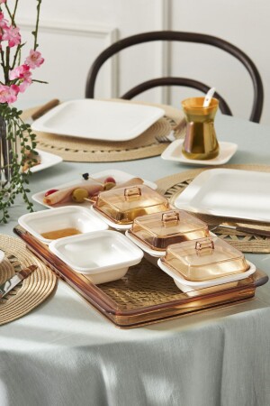 MNZ-Fabio Amber Porcelain 41 قطعة الإفطار / خدمة مجموعة 6 أشخاص مربع