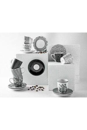 MNZ-Fain Porcelain 4 Piece Coffee Cup Set لـ 2 أشخاص 80 متر أسود 10035827