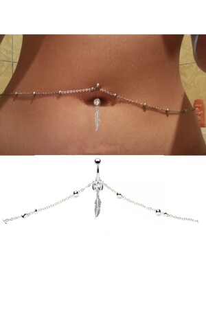 Kararmaz 2 Parça Gümüş Renk Bel Zinciri ve Bel Kolyesi Missy