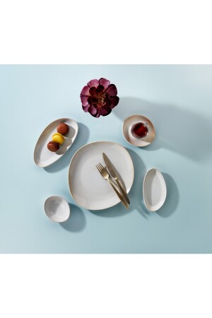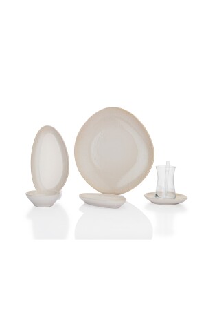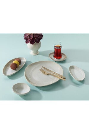 64 Parça 12 Kişilik Platin Modern Krem Kahvaltı Takımı