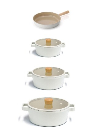 Bio Granit 7 Prç Istiridye Fildişi & Gold Kulp Tencere Ve Tava Seti EVTGR7PRÇEZMFİLDİŞİ