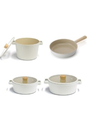 Bio Granit 7 Prç Istiridye Fildişi & Gold Kulp Tencere Ve Tava Seti EVTGR7PRÇEZMFİLDİŞİ