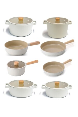 Bio Granit 7 Prç Istiridye Fildişi & Gold Kulp Tencere Ve Tava Seti EVTGR7PRÇEZMFİLDİŞİ