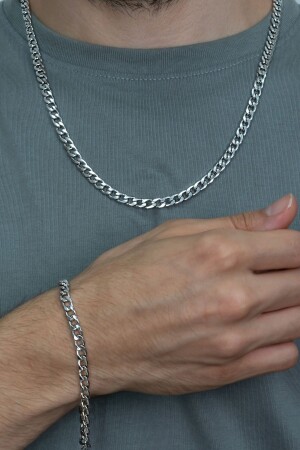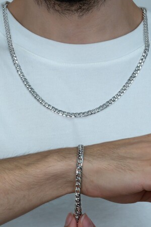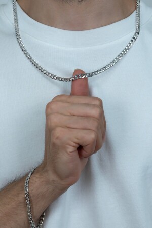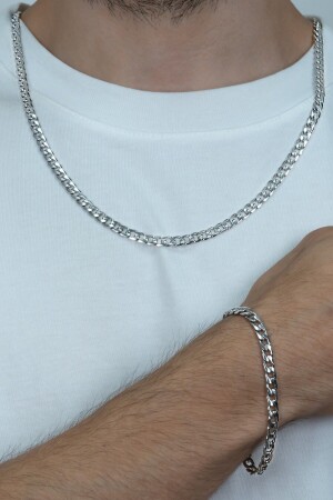 MNZ-Fine Gourmet الرجال سلسلة الصلب قلادة و سوار مجموعة 4mm Eck06t