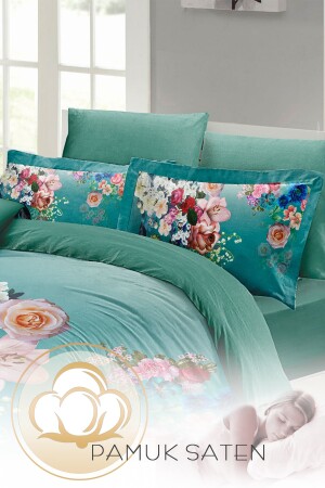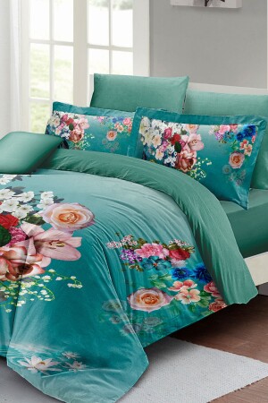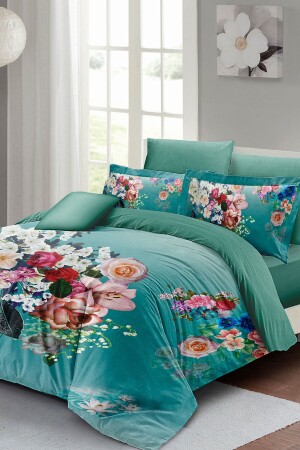 MNZ-Floral Turquoise Double Duvet Cover Set 3d القطن ساتين monohome2020