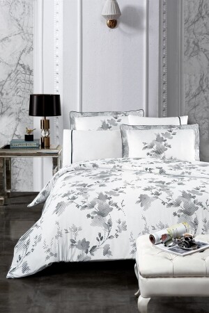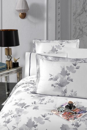 MNZ-Florentina V. 1 100٪ القطن ساتيين غطاء غطاء مجموعة، ورقة معتدلة، مزدوجة الأبيض-الأسود نمط RNT001