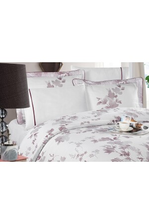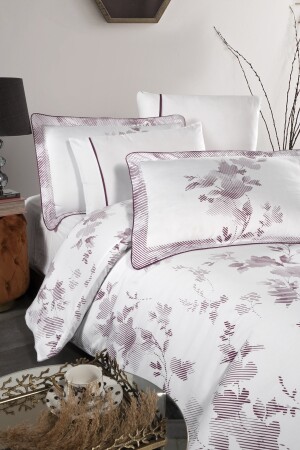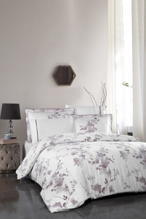 MNZ-Florentina V. 2 100٪ القطن ساترين غطاء غطاء مجموعة ورقة مصممة الحجم الملك الحجم الملك الحجم الأبيض-الأرجواني النمط