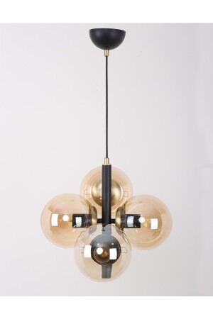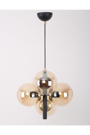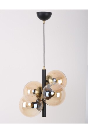 Pare Model Modern Spor Siyah 4'lu Glop Füme Camlı Avize