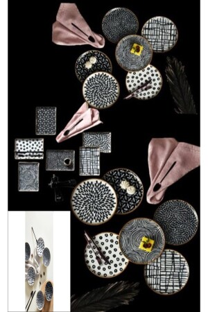 محتوى MNZ-Team 6 قطع من لوحة خدمة 24 سم ، 6 قطع من لوحة كعكة 20 سم ، 6 قطع من لوحة فطور 18x13 سم ، 6 قطع من لوحة 12 سم