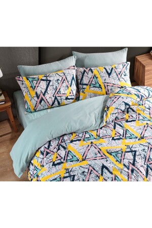 MNZ-Geometric Double-Side Multi-Color Double Duvet Cover Set مع ورق Nalls2023Geo