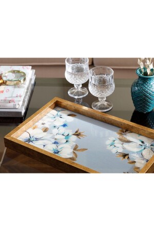 Lüx Kare Kelebek Aksesuarlı Paslanmaz Çelik 6’lı Gümüş Kahve, Çay, Dekoratif Sunum Servis Tepsisi MZKBK667