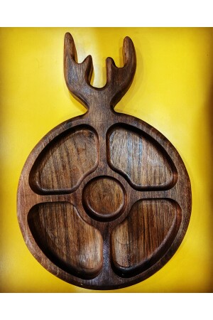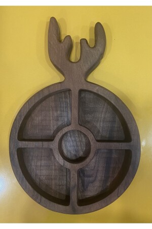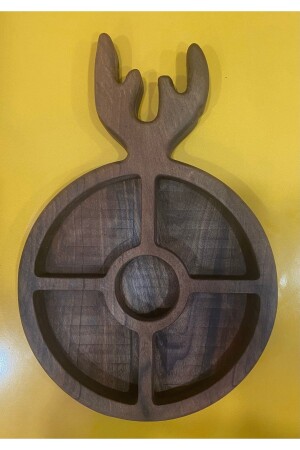 MNZ-Geyik - لوحة الإفطار الخشبية، وعاء العشاء، وعاء العرض 30x18 سم مصنوع من خشب الجوز. DNZ-KT0010
